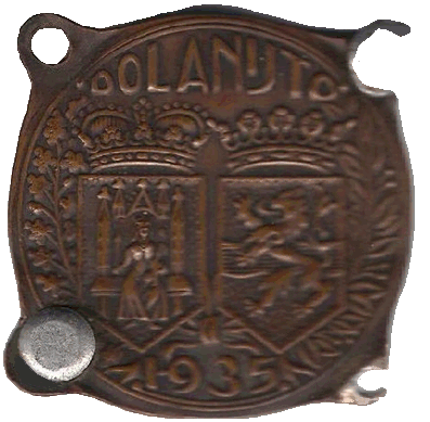 Ik moet zeggen dat ik me niet goed kan herinneren hoe die plaatjes eruit zagen, maar het komt me voor de geest  dat er een fietswiel op stond met daarin het jaartal.  De indruk die ik heb,  is rood van kleur. Dat stak goed af tegen de zwarte fiets; iedere fiets was toen zwart. Tot aan de Japanse bezettingstijd was die regel van kracht. Wat er buiten het kamp met deze belasting gebeurde, weet ik niet. In het kamp moesten wij al heel gauw onze fietsen inleveren. Na de oorlog was het een janboel. We hebben nog driejaar in Batavia gewoond, daar had  ik weer een fiets.