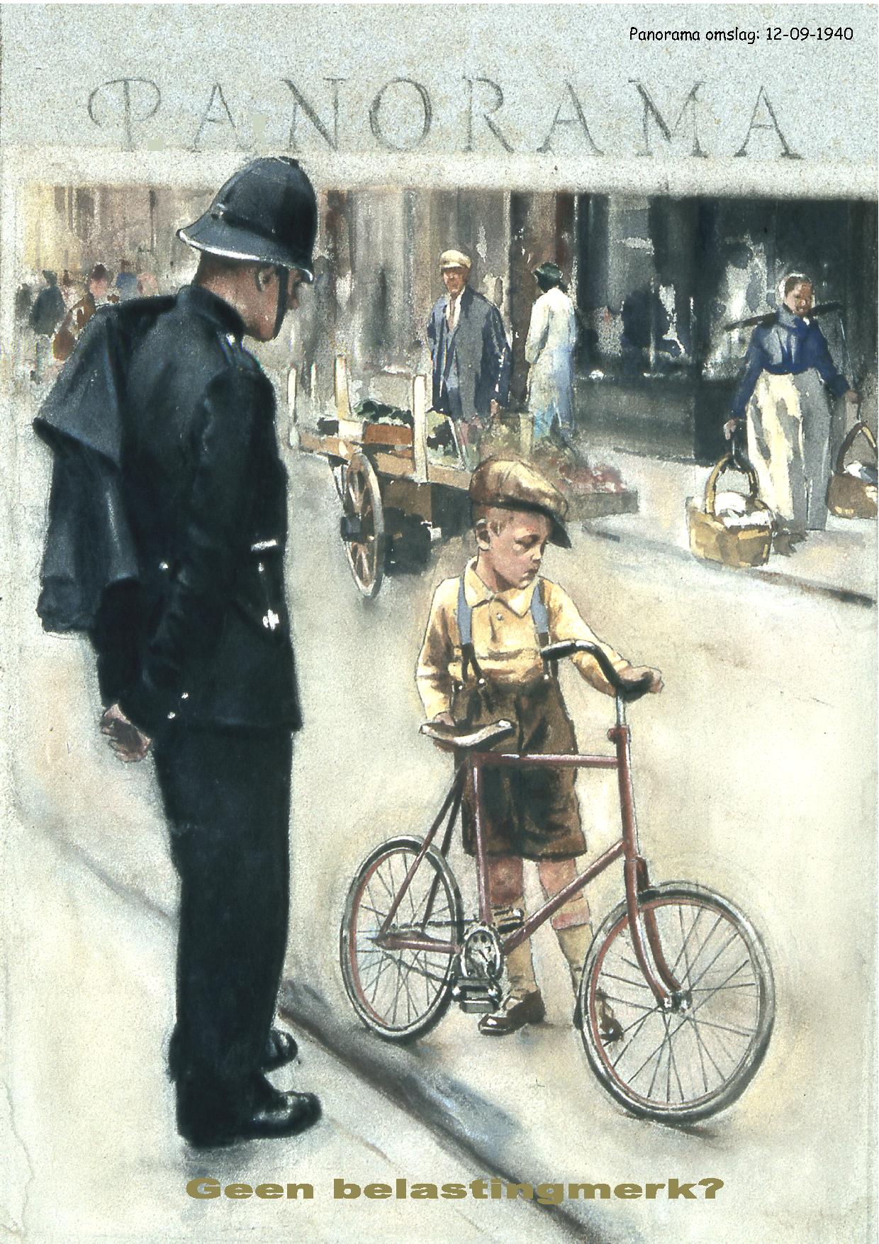 een geldig Rijwielbelastingplaatje. Uniform met z.g. Bobbyhelm van 1937 tot 1942.