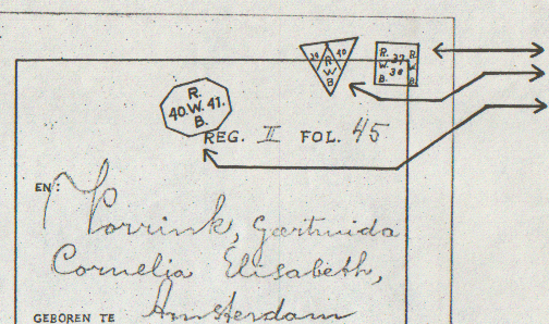 · De stempeltjes staan veelal in de rechterbovenhoek van de namenbladzijde